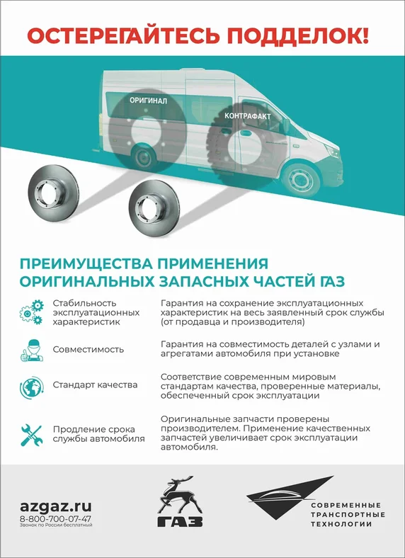 Если Ваш автомобиль находится на гарантии, в течение всего гарантийного срока рекомендуем использовать запасные части, маркированные товарным знаком «ГАЗ».